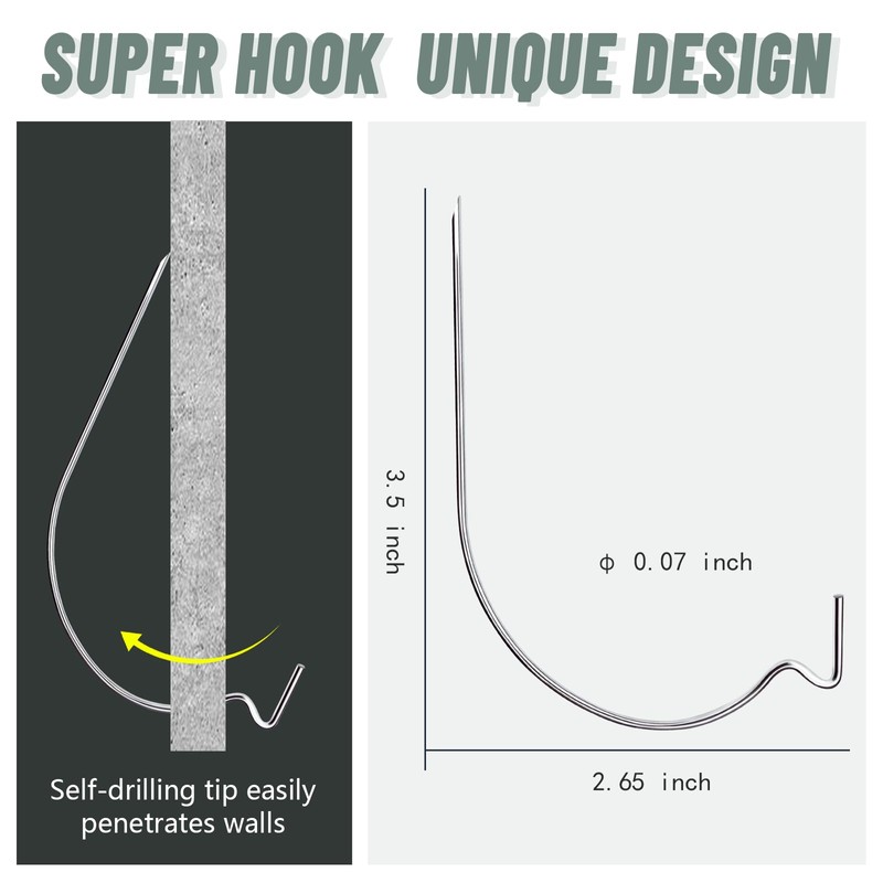 - Light and Sturdy:These lightweight super wall hooks are sturdy and strong enough to support about 100 lbs