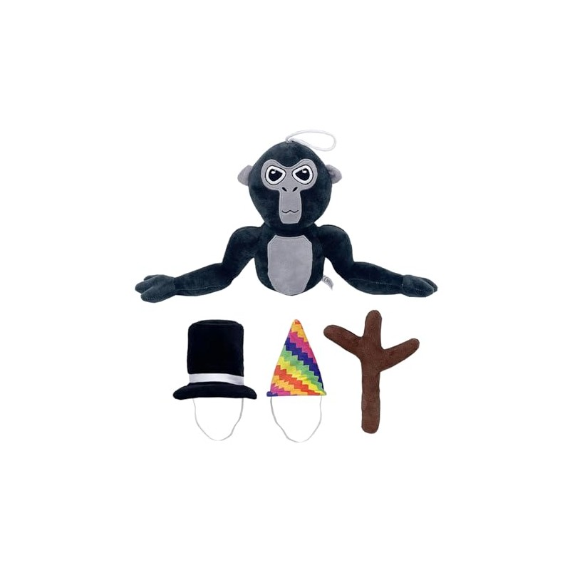 - 【Fun Design】This Gorrila plush derived from popular games and offers endless entertainment options.The Monkey has a magic wand, a black cylinder hat and a colourful pointy hat.The Monkey has a string on its right wrist that allows it to hold the magic wand.It looks so funny!
