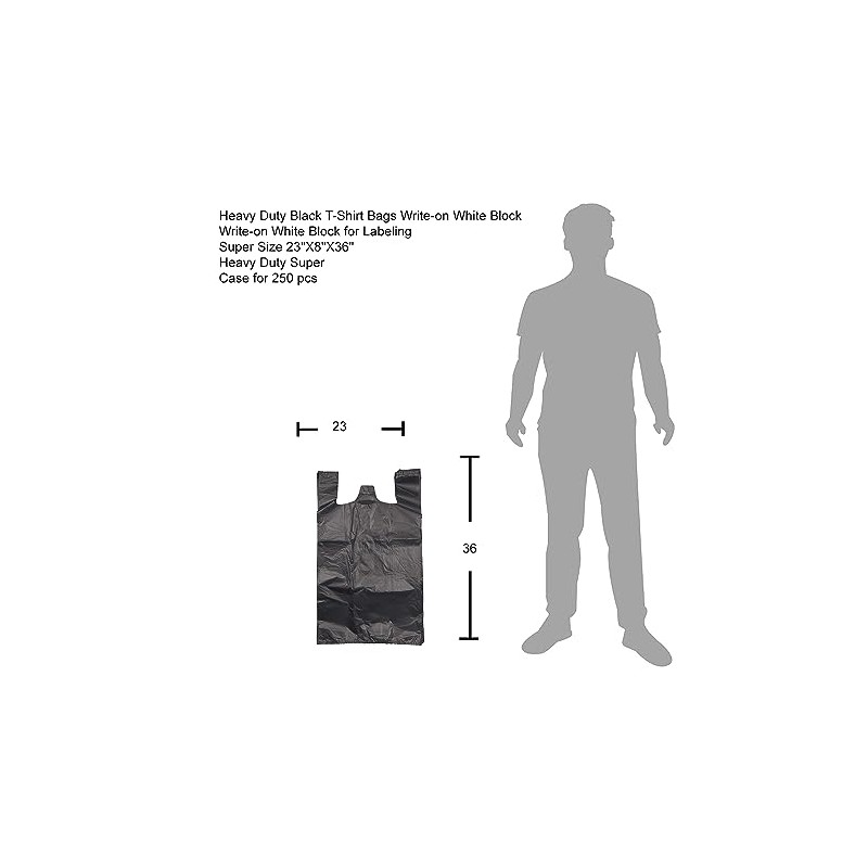 Super Jumbo Heavy Duty Black T-Shirt Bags Write-on White Block for Labeling Strong Durable 23"x8"x36" (Case of 250)