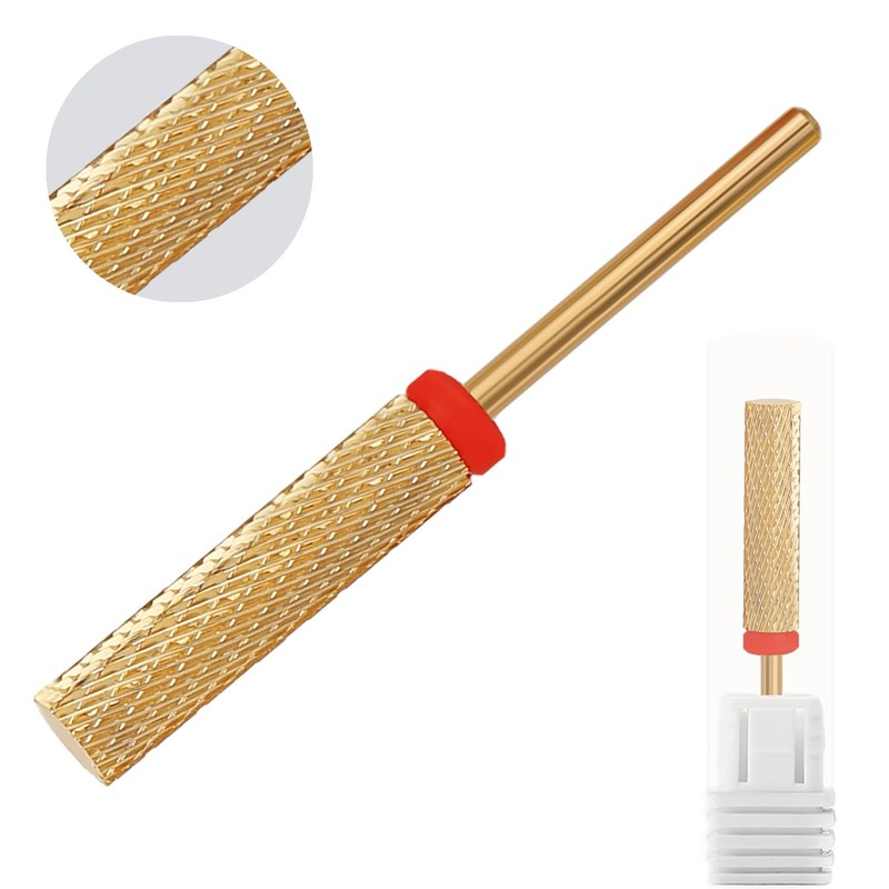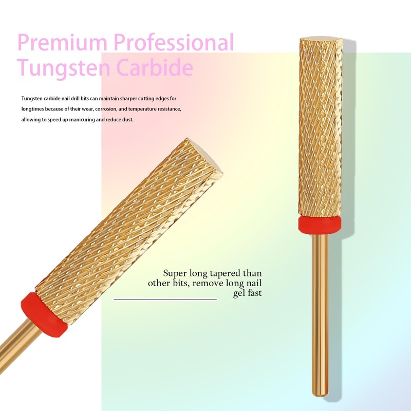 Super Long 24mm Flat Top 5-in-1 Nail Drill Bits, 3/32" Two-Way Rotate Carbide Tungsten Bits for Acrylic/Gel Removal,Professional Electric Drill Accessories for Manicure & Pedicure (Gold, Fine-F)