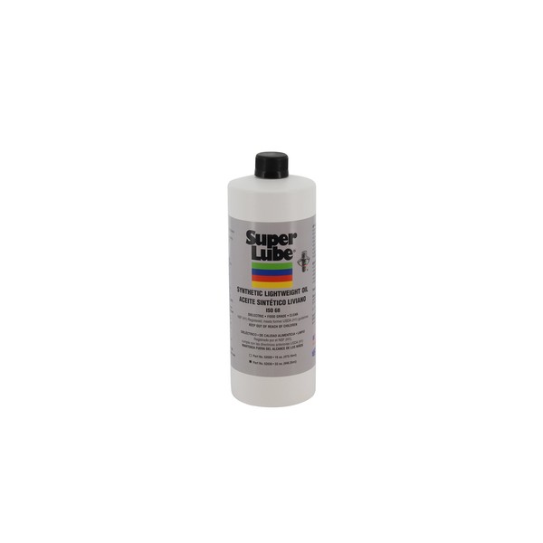 Super Lube Synthetic Lightweight Oil has an operating temperature range of -40°F to +500°F. It is ideal for misting, dripping, spindle oil applications, and as a food-grade chain lubricant and rust inhibitor. It is an excellent electrical motor and sintered bearing lubricant.