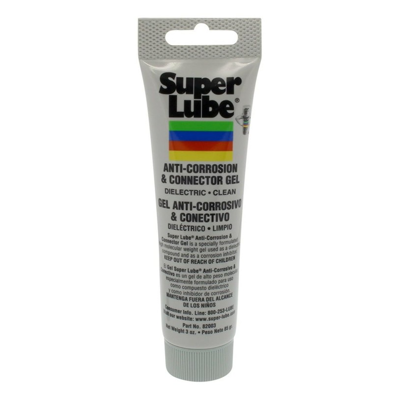 Super Lube Anti-Corrosion Gel is a specially formulated high molecular weight synthetic connector gel used as a dielectric compound and as a corrosion inhibitor for plugs, connectors, electrical terminals, electrical fittings, spark plugs and coil connectors. It is a superior oxidation barrier, clear in appearance. Excellent film strength provides long life protection against corrosion, rust and fretting wear of contacts. Super Lube Anti-Corrosion Gel will provide much better protection than typical grease. The thin "00" viscosity of the product makes it easy to coat and prepare a barrier of protection that will outlast conventional greases.