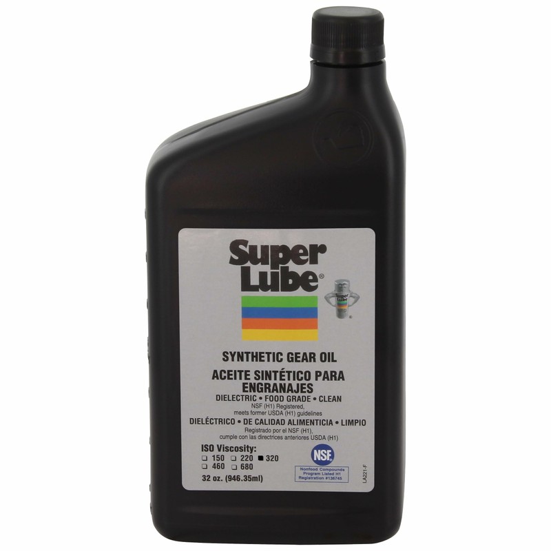 Super Lube Synthetic Gear Oil - Heavy Duty Synthetic Machinery Oil for Truck & Auto Maintenance - NSF H1 Food Grade Gear Lubricant - ISO 320 - Translucent Amber - Bottle - 1 qt (54300)