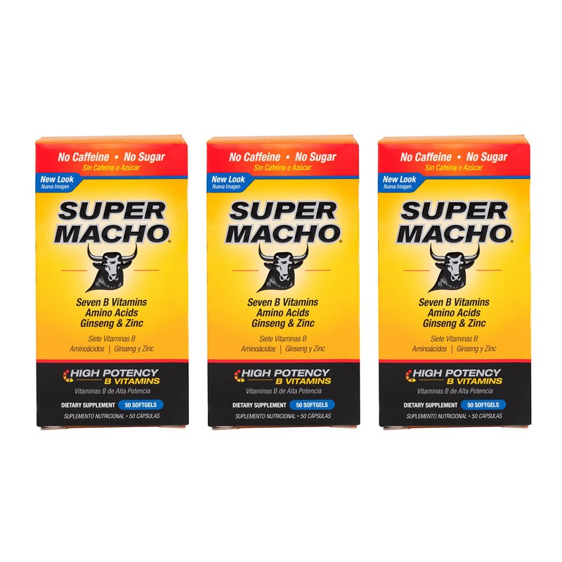 Super Macho® has some distinct differences when compared to many liquid energy drinks. First, Super Macho® does not contain caffeine, sugar, artificial colors or flavors, preservatives or sodium. Second, Super Macho’s formula includes a unique blend of high potency B Vitamins in convenient, easy to swallow softgels. Finally, one bottle of Super Macho® contains a 25 day supply of product - a much better value than energy drinks and shots.
