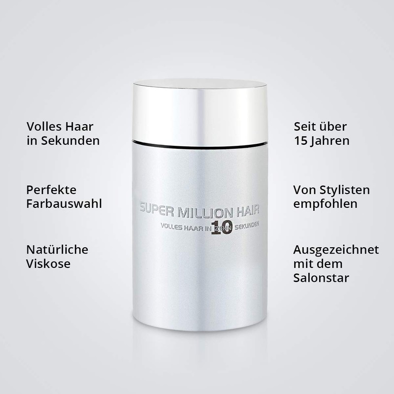 - HIGH QUALITY: For 15 years on the market, Super Million Hair Pouring Hair for Women and Men is the perfect solution for light hair and hair loss. Awarded the salon star, particularly leading stylists and doctors recommend our product.