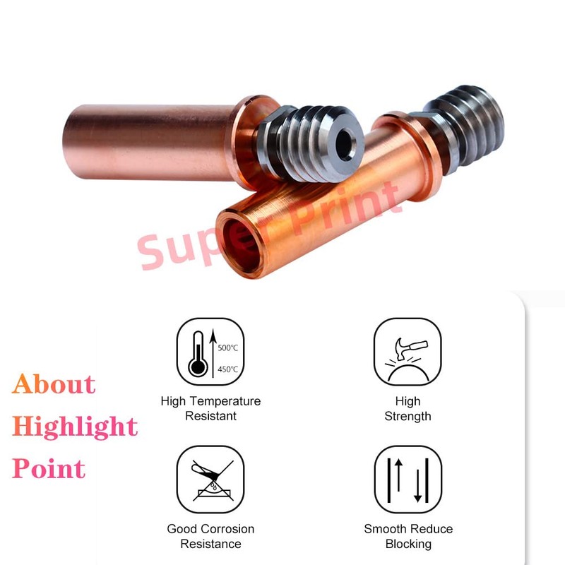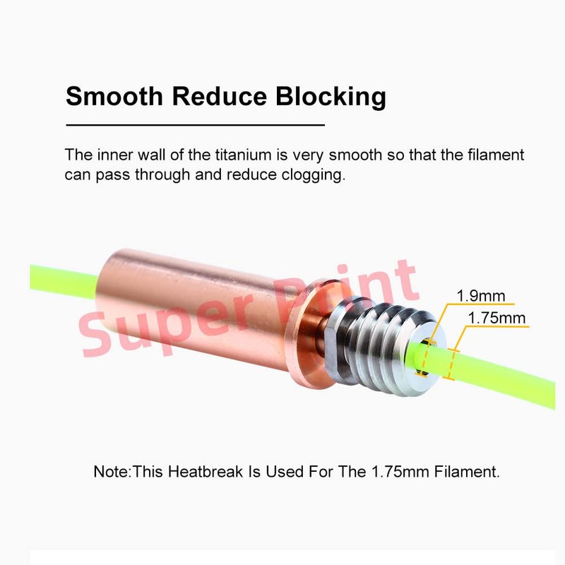 - 1. This is a branch design of the bimetal heatbreak. The thermally blocking front end is made of titanium alloy and the rear end is made of copper alloy. It has strong thermal blocking ability. For 1.75 mm filament.