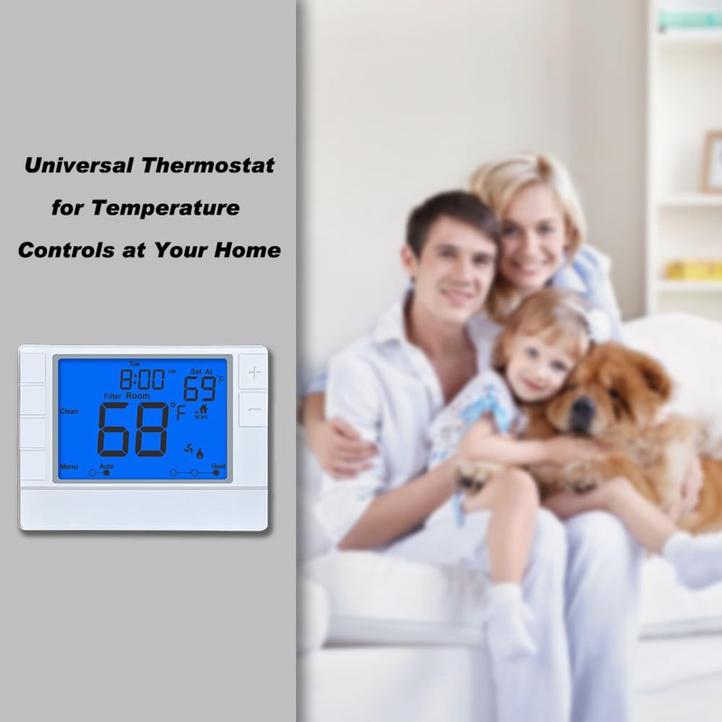 Super Programmable Thermostat for Home,2 Heat/1 Cool Heat Pump Or 1 Heat/1 Cool Conventional Systems, Blue Backlight
