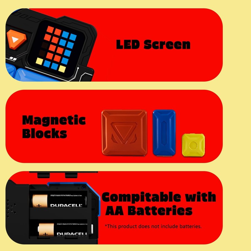 - SPECS - Multi-colored / Compatible with AA batteries (2pcs required) / Battery not included / Magnetic blocks / LED screen