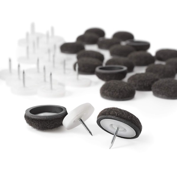 Super Sliders twin shielf felt pad system pairs the long term hold of nail on felt with easy to replace secure grip formed felt furniture pads. The nail on glides provides a secure base perfectly sizes for the formed felt pad to grip for felt protection that lasts three times longer. Prevent scratches on hardwood and other hard surface flooring while reducing friction and noise. When its time to replace, simply remove the formed felt pad and replace with 1" Super Sliders formed felt pads. Nail in one and then replace with ease for the lifetime of your furniture. Trusted surface protection from Super Sliders.
