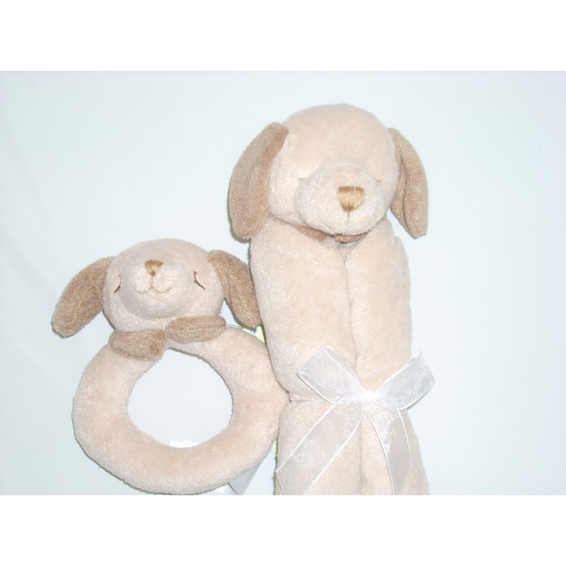 Super Soft Security Blanket with Matching Rattle Baby Gift Set : Tan Puppy Dog