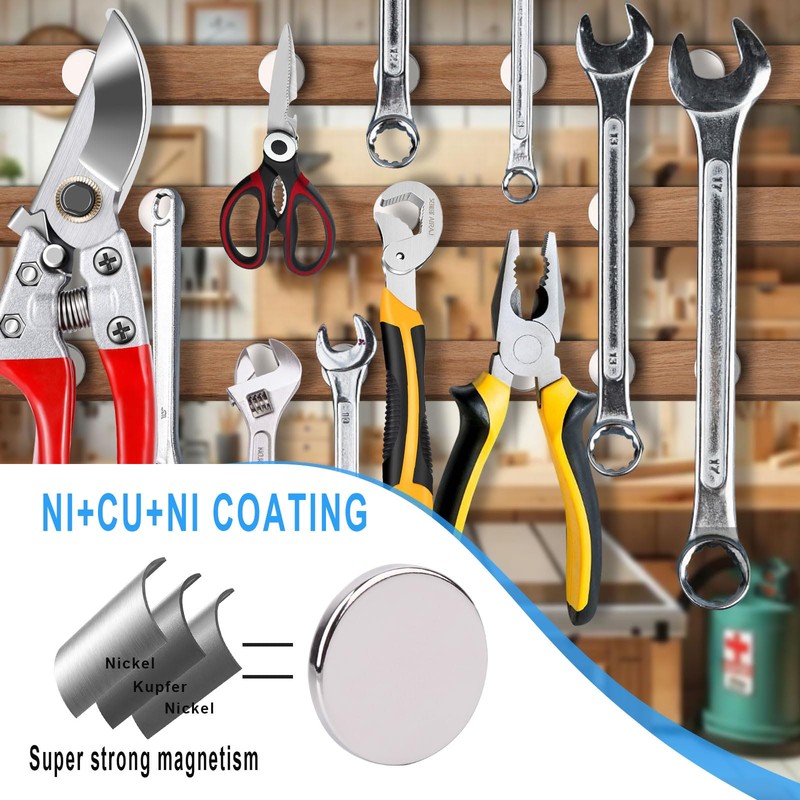 - Strong magnets: Rare earth material neodymium magnet, with strong suction. The surface of the disc strong magnets is covered with Ni+Cu+Ni three-layer coating, which is the best coating to give the magnet gloss as well as rust and corrosion protection.