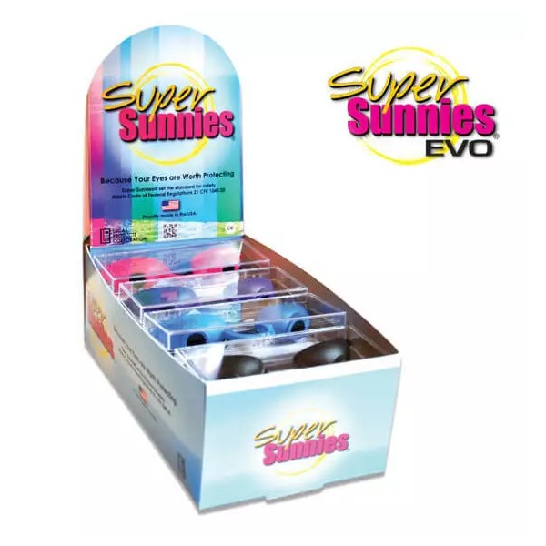 Super Sunnies Evo Flex UV Tanning Goggles - With Carry Case - 4 Colors - 12 pack