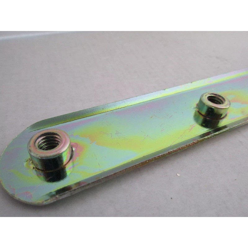 ZINC BRACKET FOR MOUNTING PROPORTIONING VALVE ON LEFT SIDE OF MASTER CYLINDER.