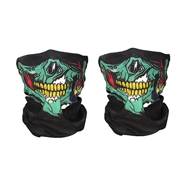 Super Things Black Breathable Seamless Tube Skull Face Mask,2 Motorcycle Face Masks (2 green)
