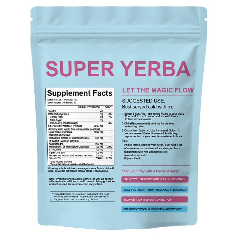 Super Yerba Tea Instant Powder with Indian Ginseng, Magnesium, Vitamin D, Ras...