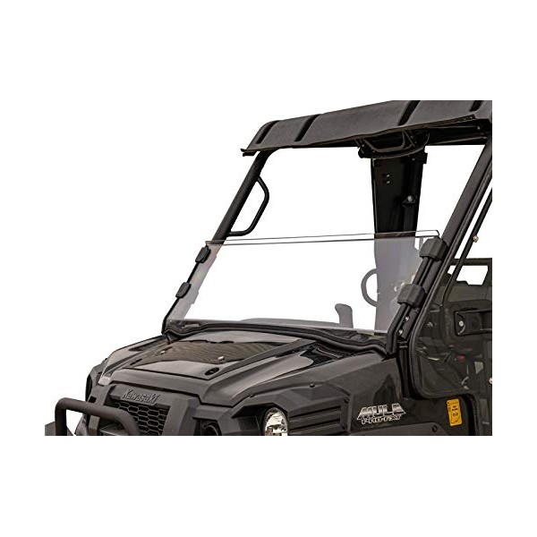 SuperATV Half Windshield for 2016+ Kawasaki Mule Pro DX/DXT/FX/FXT Rancher | 2015+ Pro FXT | Standard Polycarbonate Construction 250x Stronger Than Glass | Windshield Height 15.7" | USA Made!