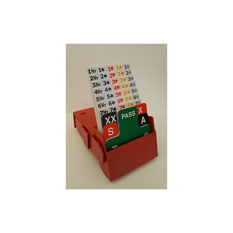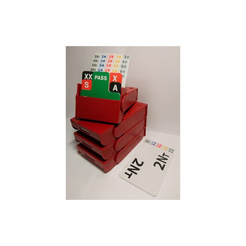 SuperBridgeBox - Bridge Boxes for Bidding (Red), set of 4 with 100% plastic bidding cards. Designed for both left AND right handed players.