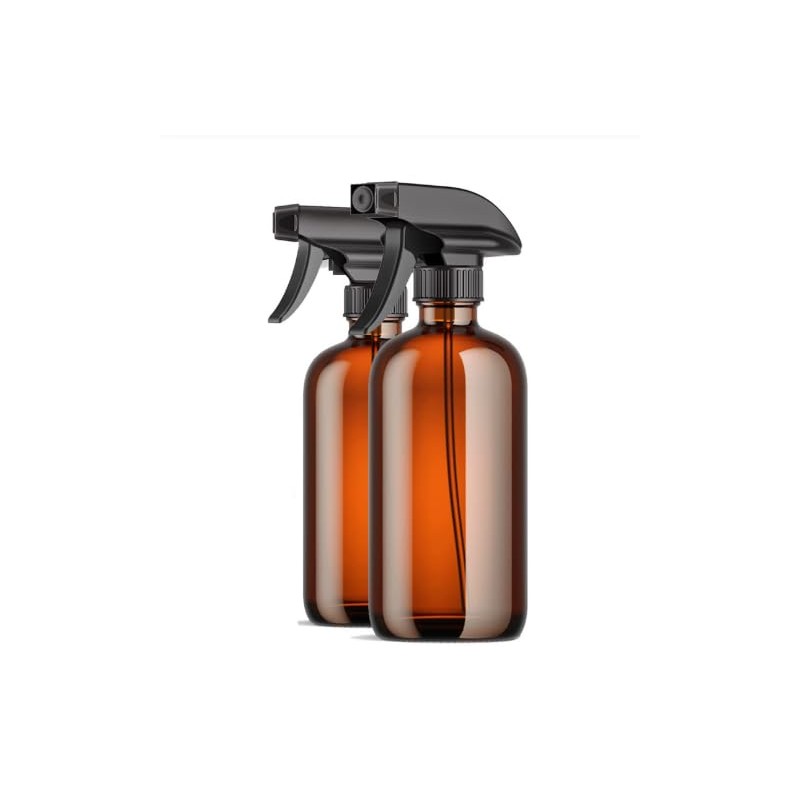 Supercenter Glass Spray Bottles, Amber Glass Spray Bottles, 16oz, Adjustable Nozzle for Stream and Spray, Reusable, for Essential Oils, Cleaning Products, Detergents