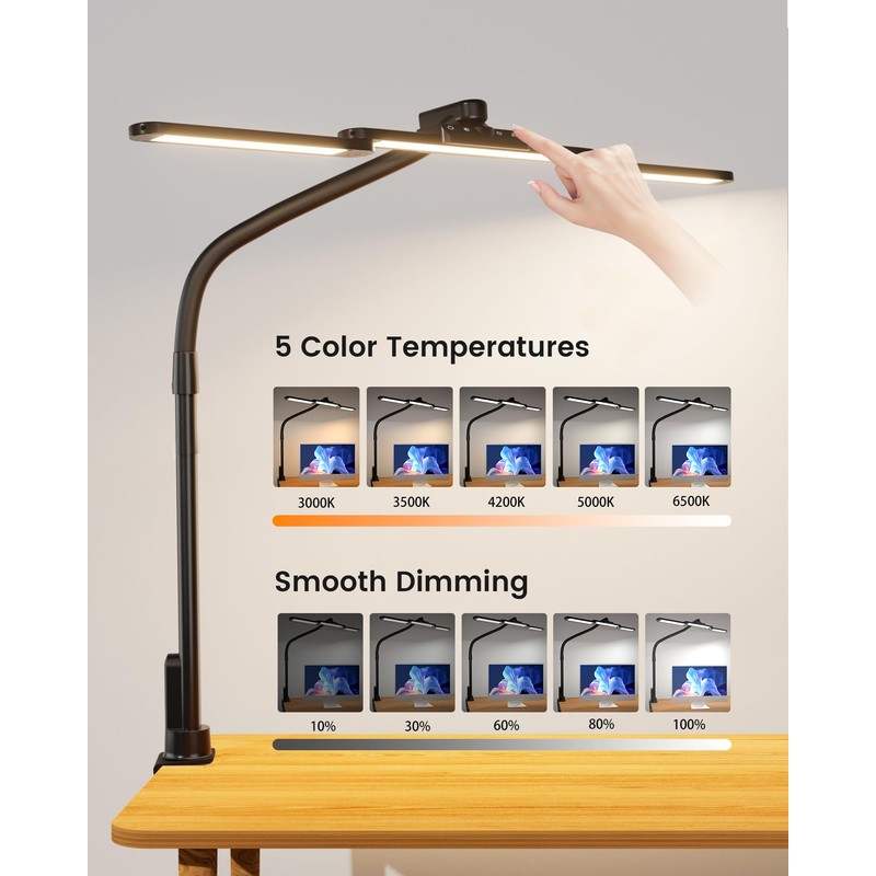 - FULL-DESK LIGHT COVERAGE: With a 31-inch long head and a super bright 1200 lm light, this lamp evenly illuminates your entire workspace (80”L×31”W). It ensures your keyboard, paperwork, or crafting area is well-lit, just like in daylight.