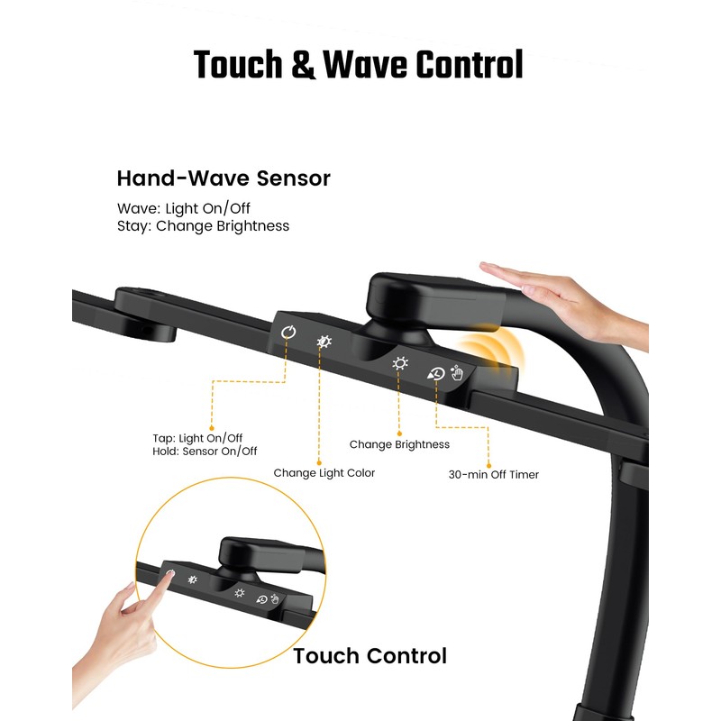 - TOUCH & WAVE CONTROL: The middle light integrates all control functions on it, and you can easily touch control or use the hand-wave sensor to turn on/off the light and change brightness. Also, you can touch to set a 30-min off timer, change light color and brightness smoothly.