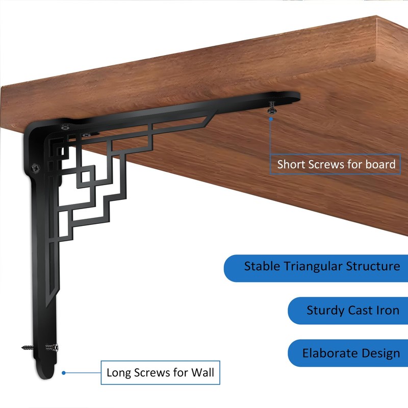 • Decorative L-shaped shelf bracket: This iron bracket features a traditional geometric pattern design that is both beautiful and practical. The L-shaped design makes it very stable and extremely durable.