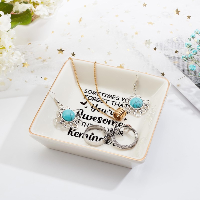 - unique Ceramic Jewellery Dish: This white plate is printed with the text "sometimes you forget that you are ...", and this tray is a great reminder, expressing your affection and love to your family or friends. Great gift for them!
