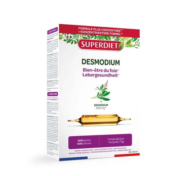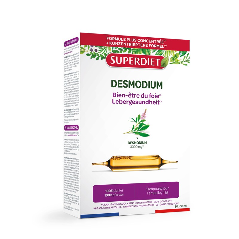 - Optimal dosage: Superdiet offers you a formula according to the CANOPÉE method with a high dosage of Desmodium. Each vial contains 3000 mg of desmodium (equivalent to dried plants) for optimal effectiveness.