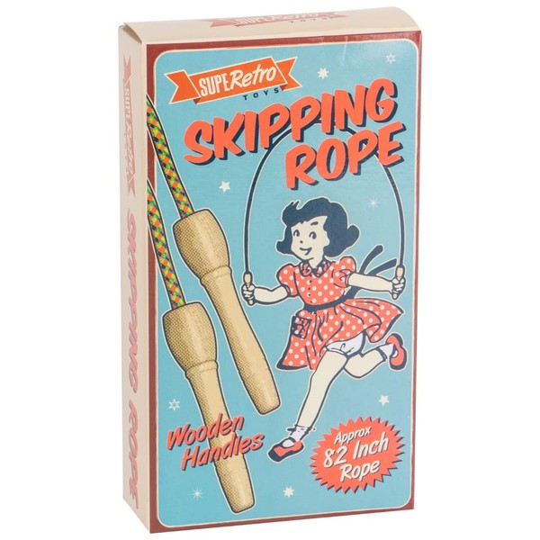 Wooden handles skipping rope that comes in a neat display box.