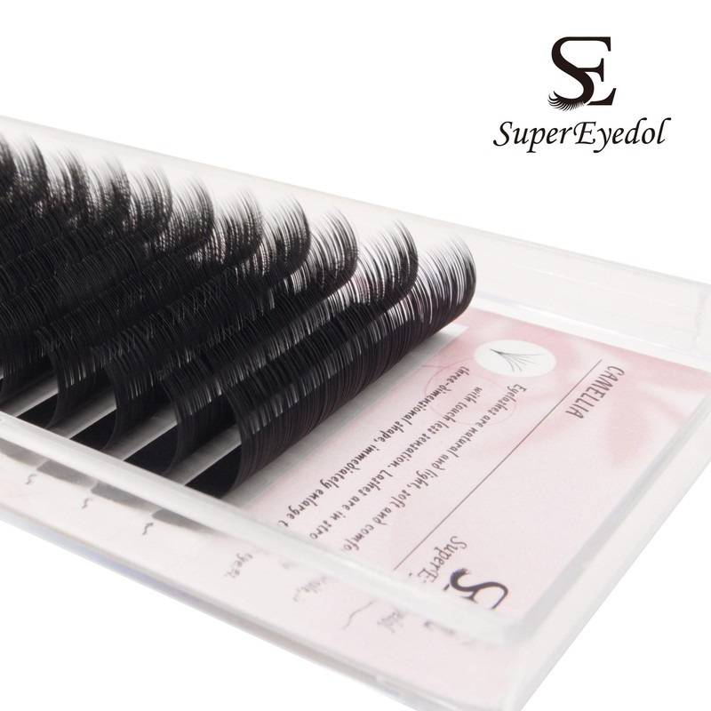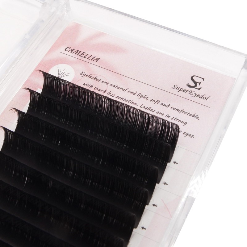 SuperEyedol Camellia 0.07mm Eyelash Extensions Professional Supplies J,B,C,CC,D,DD Curl 8-15mm One Strip 3 Mixed Lengths Individual Lashes Matte Black, No glue at root Soft Rapid Blooming (DD-11-12-13)