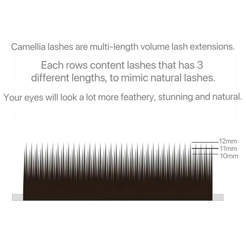 - Our Camellia lashes are multi-length volume lash extensions. Each rows content lashes that has 3 different lengths, to mimic natural lashes. Your eyes will look a lot more feathery, stunning and natural.