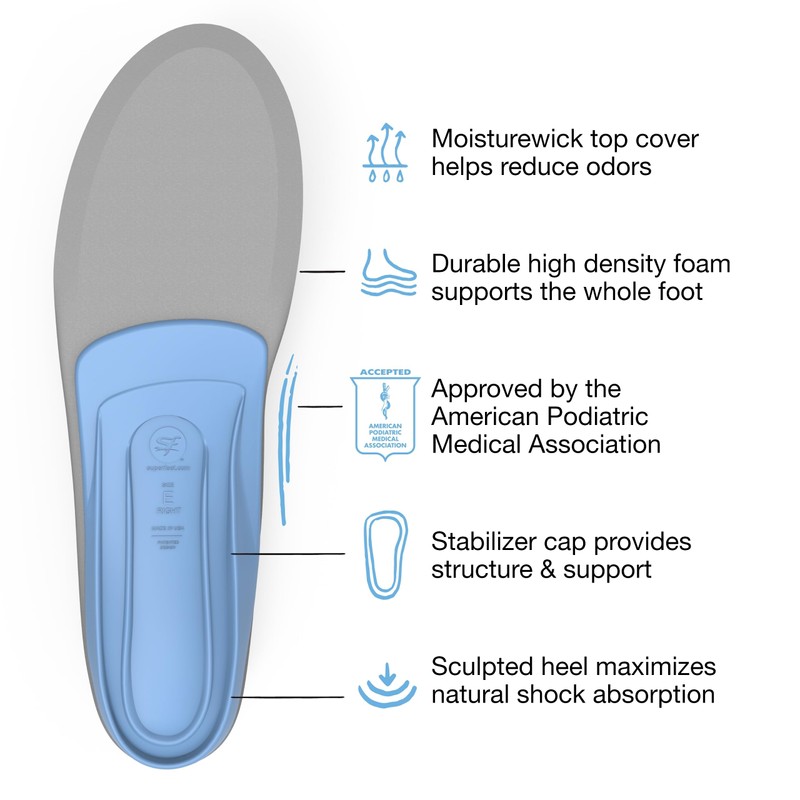 - Medium Arch Orthotic Support: Helps stabilize the foot, reducing stress on feet, ankles, knees, and back; all-purpose insoles for 24/7 use and flat feet