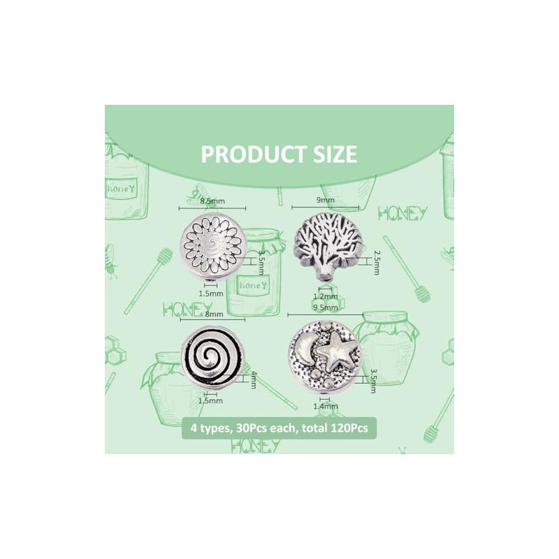 - Tibetan Style Beads:The patterns on these Tibetan alloy beads are all very exquisite,including star and moon patterns,spiral patterns,flower patterns,and Tree of Life patterns.These trendy bead charms will make you even more charming.