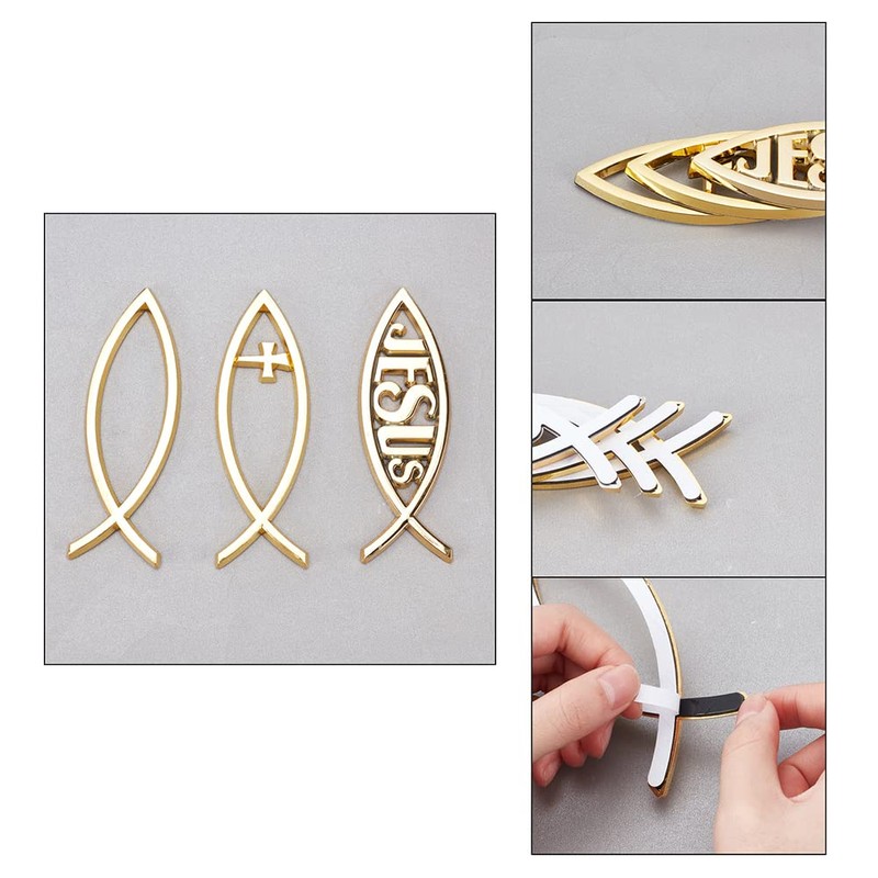 SUPERFINDINGS 3 Pieces 3 Styles ABS Plastic Jesus Fish Sticker Gold 3D Car Sticker Emblem Sticker Plastic Car Emblem For Jesus Christian Fish Symbol