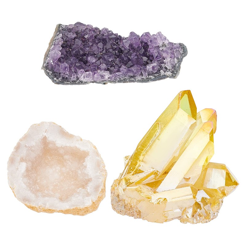 SUPERFINDINGS 3 Style Angel Aura Quartz Geode Purple Project Large Amethyst Cluster Natural Rock Crystal Cluster Geode Citrine Nuggets Stone For Home Decoration