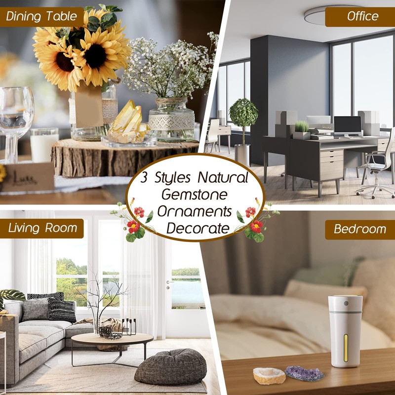 - 3 Style Stone You will get amethyst cluster, citrine uggets and quartz crystal 3 types, enough to meet your needs.
