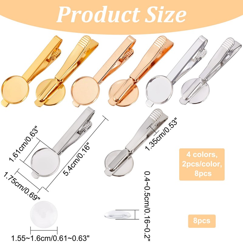 - 4 Colors:You will receive 8pcs tie bar clips with blank bezel tray in 4 colors,including golden,light gold,platinum and silver,it can be a good choice as gift giving to your boy friend, husband, father or male friends