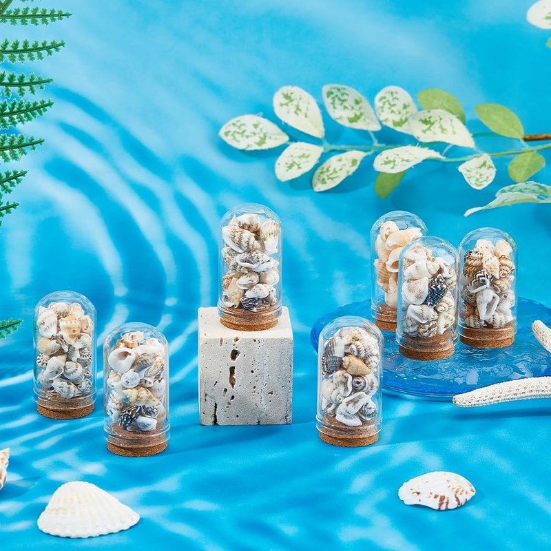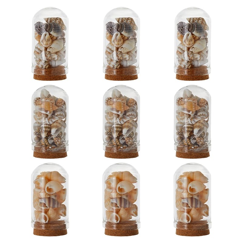 - 9 Glass Covered Bottles with Shells: You will receive 9 clear domed glasses with wooden bases. Each dome is about 25mm in diameter, 46~48mm in length and weighs about 158.3 grams. It contains the included shells in 3 styles. You can match it on your desktop as you like, lightweight and practical.