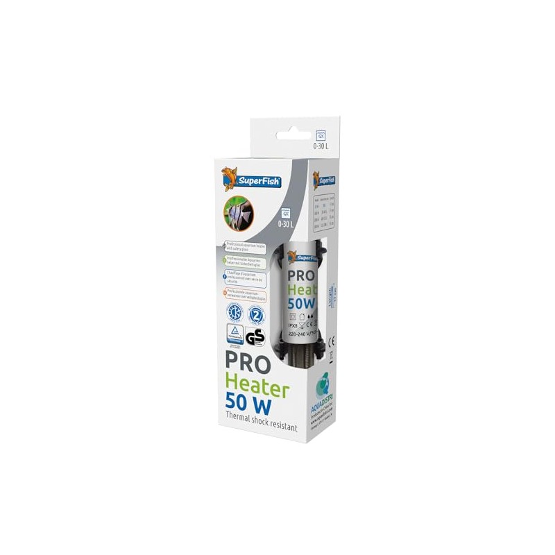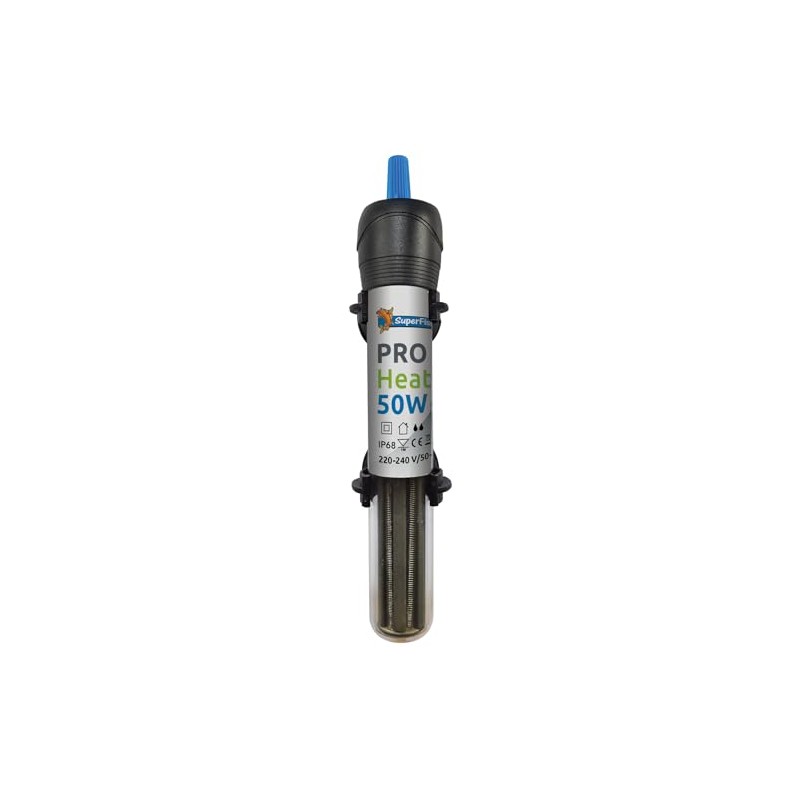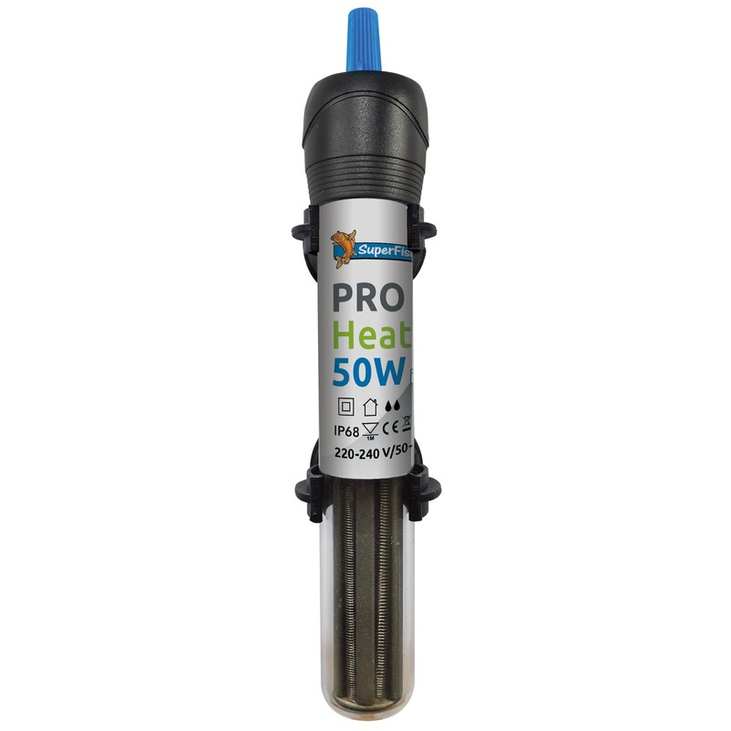 The Superfish Pro 50W submersible tropical aquarium heater is a reliable heater that can be mounted to your aquarium using the included suction pads and warm your aquarium. The Superfish Pro 50W is suitable for aquariums 0 - 30 Litres big.