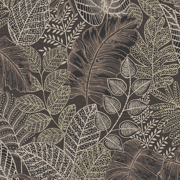 Superfresco Easy Scattered Leaves Charcoal/Gold