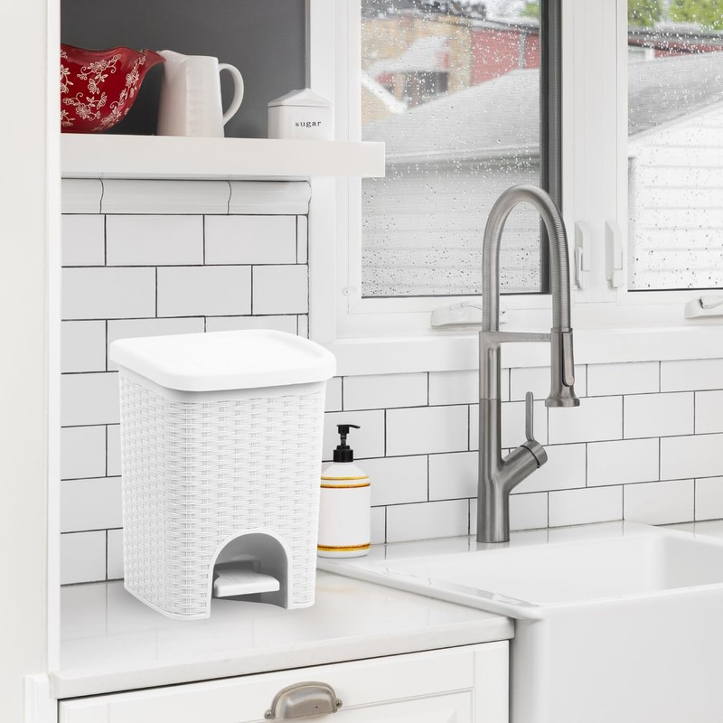 Superio 2-Pack 6L Step Pedal Trash Can - Wicker Design, Hidden Mechanism, Durable Plastic, Ideal for Desktop, Countertop, Pet Waste - White