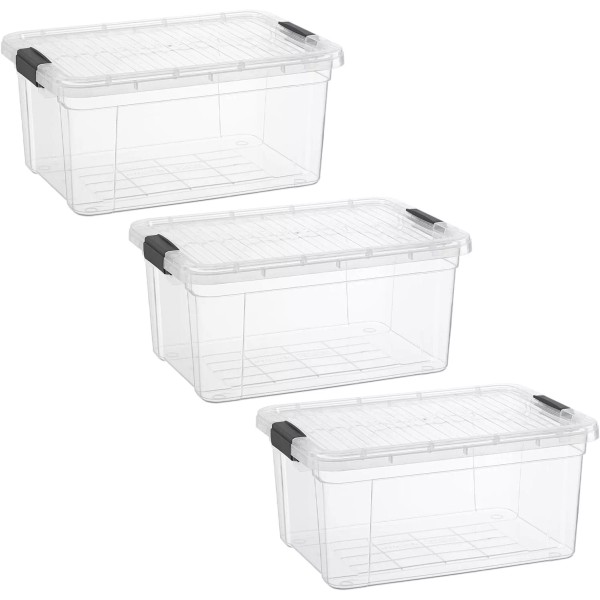 Superio Clear Storage Bins with Lids, 3 Pack- Plastic Storage Boxes - 11 Quart