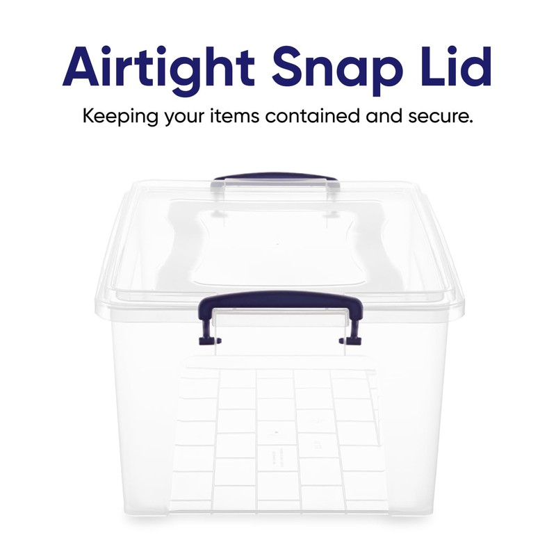 - ORGANIZING LATCH BOX- This storage box measures: 16.5" x11" x7.25" The interior measures - 13.75" x9.125" x6.5". It is perfect for storing Clothing, crafts, tools, school supplies, projects, toys, legos and other storage,. It is the most helpful in closets, on shelves, for classrooms, dorm, and other home storage and organization