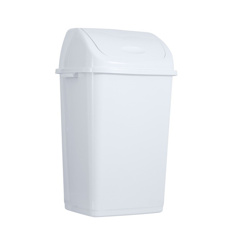 Superio Large Plastic Kitchen Swing Top Trash Can with Lid - 13 Gallon, White