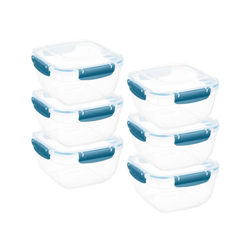 Superio Plastic Food Storage Containers, Airtight Lids, 13 oz., Blue, 6 pack