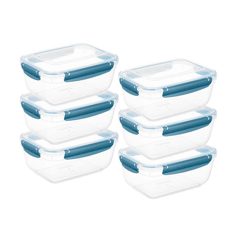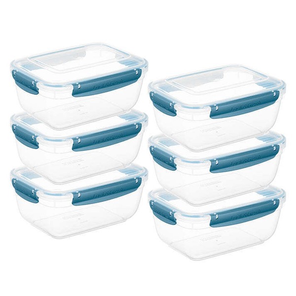 Superio Plastic Food Storage Containers, Airtight Lids, 80 oz., Blue, 6 pack