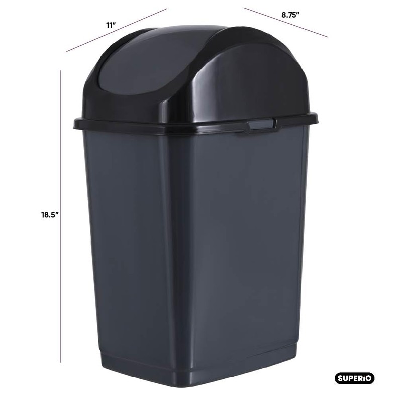 Superio Trash Can for Dorm Room with Lid 4.5 Gallon Plastic Garbage Can with Swing Top Lid, Medium Slim Waste Bin with Cover for Home, Kitchen, Office, Bedroom, Bathroom, College- 18 Qt (Dark Grey 2)