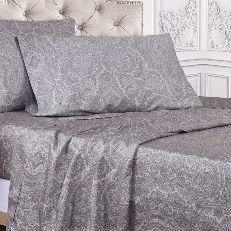 Superior 600 Thread Count Cotton Blend Bed Sheet Set, Includes 1 Fully Elastic Deep Pocket Fitted Sheet, 1 Flat Sheet, 1 Pillowcase, Sateen Weave, Italian Paisley Design, Olympic Queen, Dark Grey