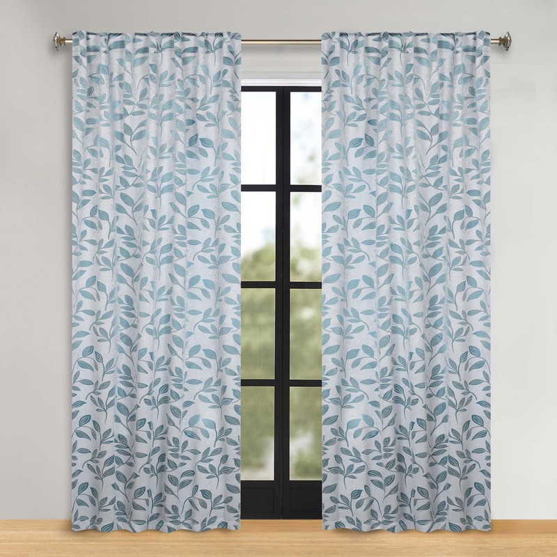 Superior Blackout Curtains, Room Darkening, Bedroom, Drapes, Kitchen, Living Room Window Accents, Sun Blocking, Thermal, 2 Pack, Leaves Blackout Back Tab Curtains, Set of 2, 52" x 84", Teal