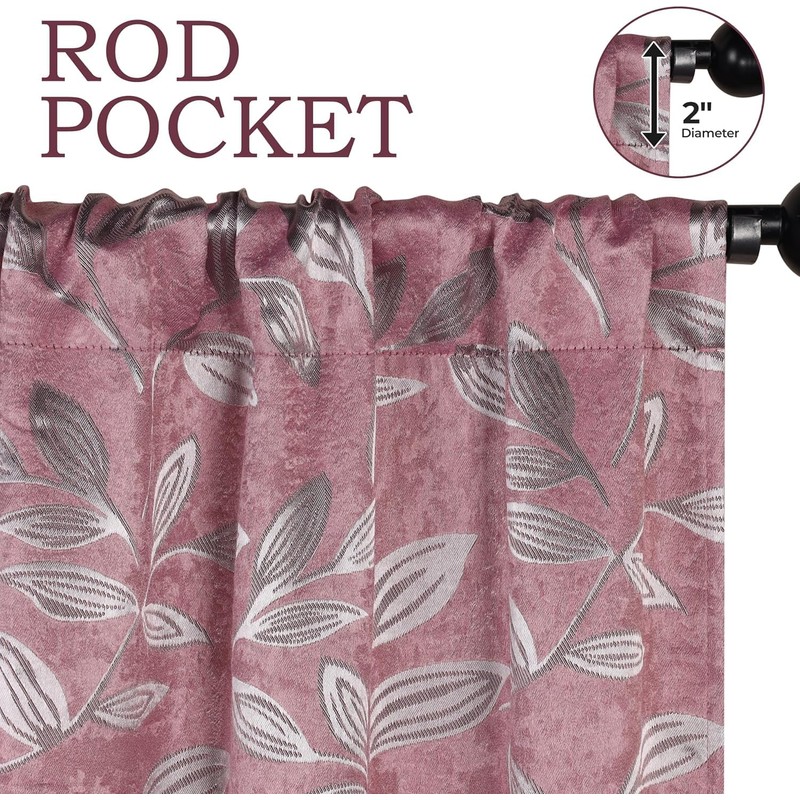 Superior Blackout Curtains, Room Darkening, Bedroom, Drapes, Kitchen, Living Room Window Accents, Sun Blocking, Thermal, 2 Pack, Leaves Blackout Curtains, Set of 2, 36" x 63", Blush