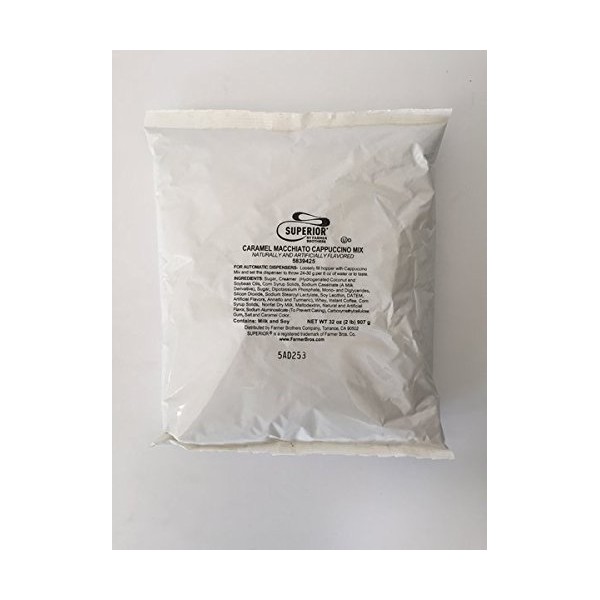 This listing is for three bags of Superior Cappuccino Mix. THIS IS THE SAME PRODUCT THAT IS SOLD BUY THE CUP IN MOST CONVENIENT MARTS AND C STORE CHAINS. IT IS SIMPLY THE BEST POST MIX PRODUCT ON THE MARKET Superb taste, lots of froth, marvelous flavor, wonderful aroma Simply mix with hot water for a delicious cappuccino or cold for a cool down cappuccino also may be used in a blender or frozen machine for a rich creamy frozen cappuccino drink ***please note that the packaging has changed but the product is the same made by superior coffee co. a division of farmer bros coffee co.